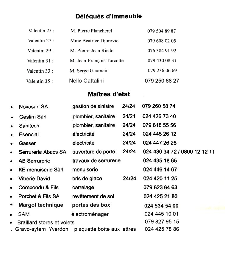 | Entretien de la porte coulissante des boxes : nettoyer et mettre un peu de silicone (VD40) | Test annuel des disjoncteurs | Liste des entreprises ayant participé à la construction | ||||||||||||