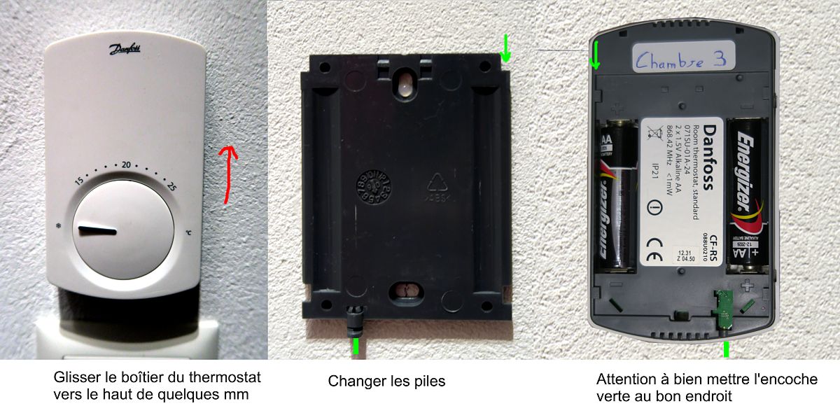 | Changement des piles du thermostat | Sonnette d'entrée, le manuel est caché derrière l'appareil. Pour changer l'étiquette à l'entrée. | Nouvelle porte de garage | ||||||||||||